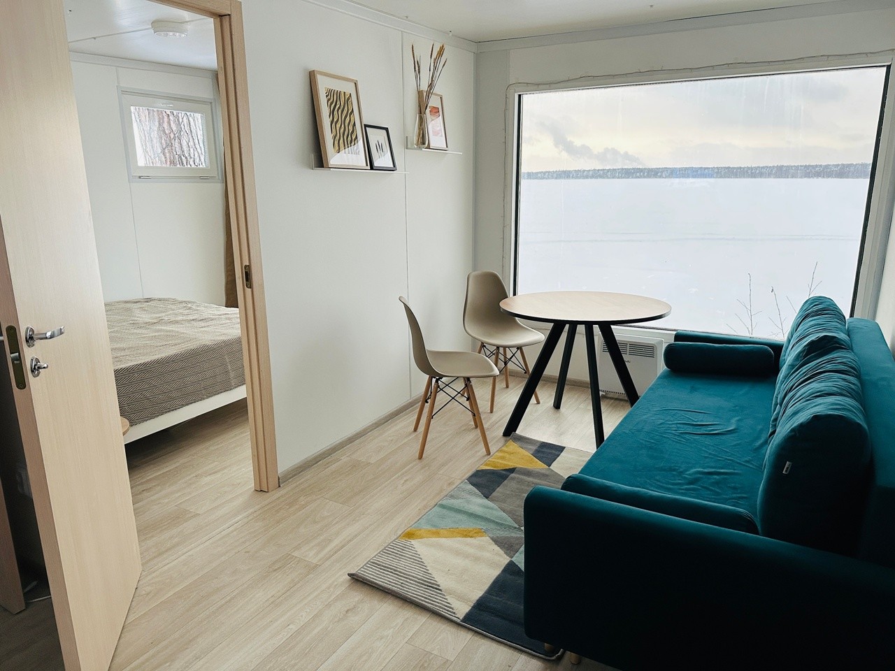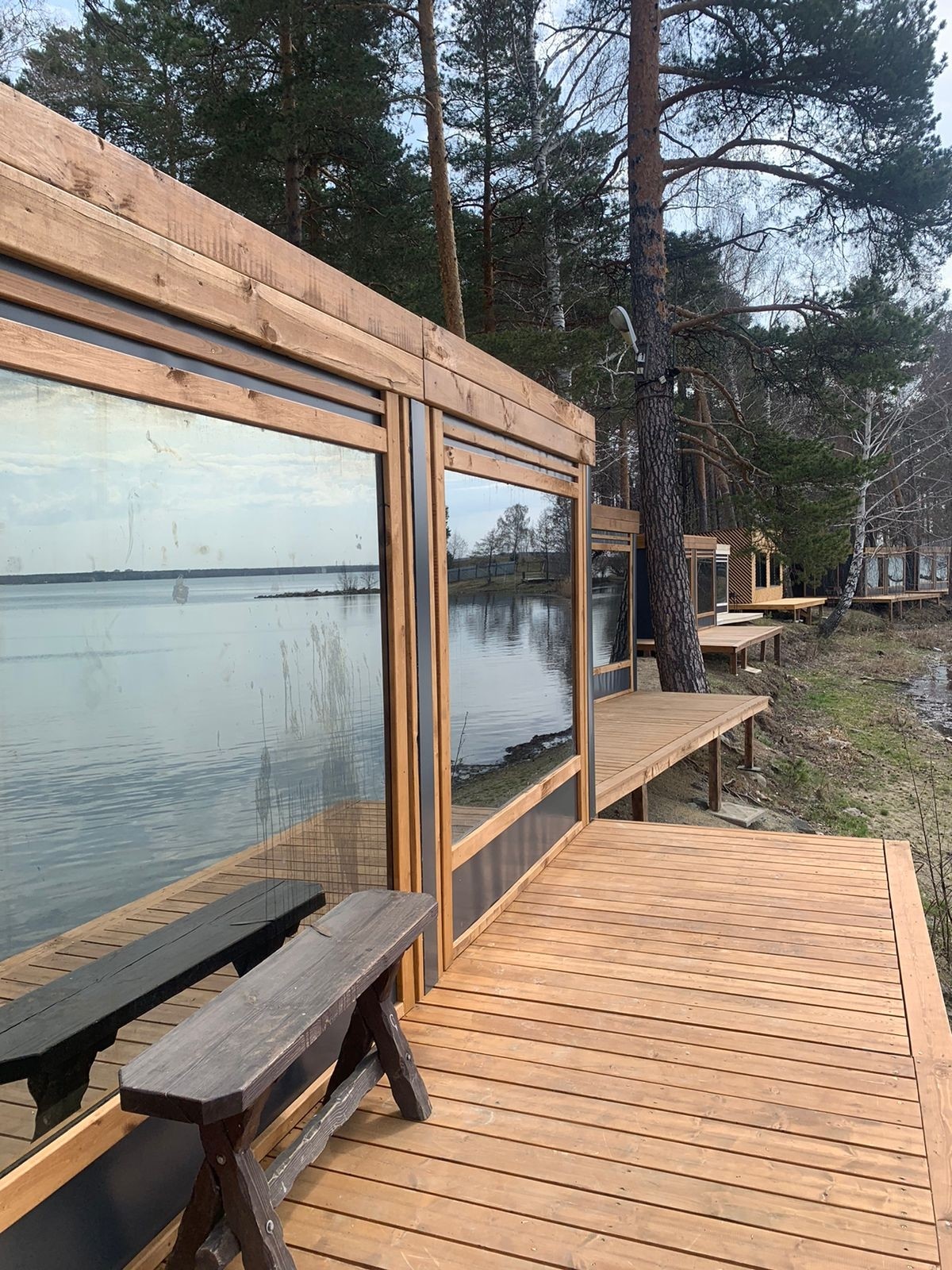 Для гостей предусмотрены собственный пляж с шезлонгами, домики с панорамными окнами на озеро, дома из деревянных срубов в лесу, бани, банный чан. Дома оборудованы всем необходимым: спальные комнаты, гостиные, кухни с бытовой техникой и посудой, санитарные узлы с душевыми кабинами.