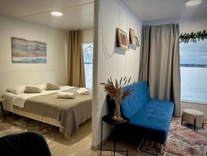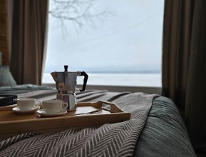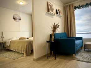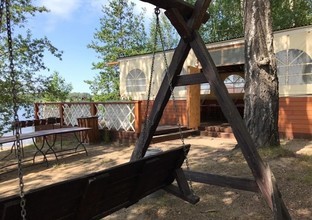 Для гостей предусмотрены собственный пляж с шезлонгами, домики с панорамными окнами на озеро, дома из деревянных срубов в лесу, бани, банный чан. Дома оборудованы всем необходимым: спальные комнаты, гостиные, кухни с бытовой техникой и посудой, санитарные узлы с душевыми кабинами.