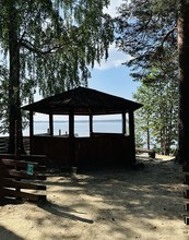 Вся территория базы окружена красивым природным ландшафтом, где можно наслаждаться прогулками по лесу и проводить время на свежем воздухе. Отдыхающие также могут посетить веревочный парк, покататься на гидроциклах и сап-бордах, порыбачить, поиграть в настольные игры, попробовать вкусные напитки в баре у озера.